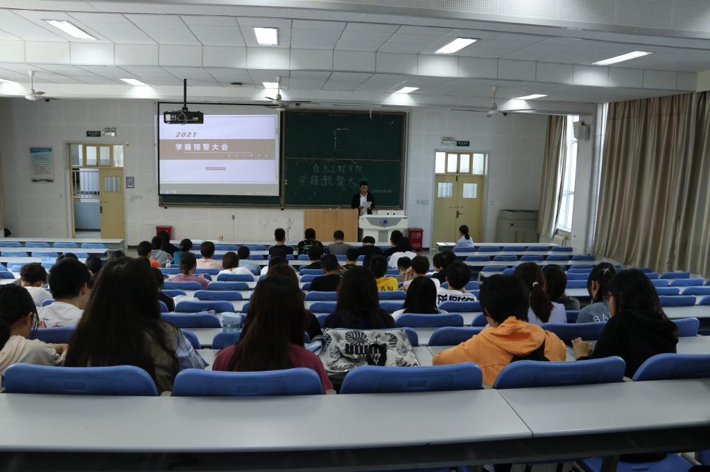 为加强学籍管理和学风建设,提高人才培养质量,信息工程学院于2021年9月29日在积学楼B2召开了学籍预警大会,信息工程学院副院长邓志龙、学工办主任张迪以及被学籍预警学生参加了会议。