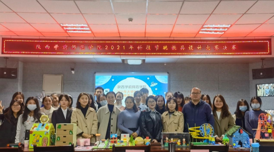 2021年11月4日下午,由教务处主办,信息工程学院承办的陕西学前师范学院2021年大学生科技节玩教具设计大赛决赛在毓秀楼智慧教室隆重举行。信息工程学院副院长王强、曲江香都幼儿园园长杜敏、雁塔区第一幼儿园副园长刘锋利及我校各学院师生代表出席了本次大赛。