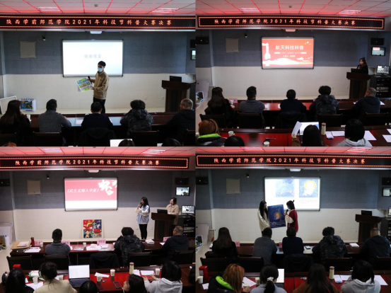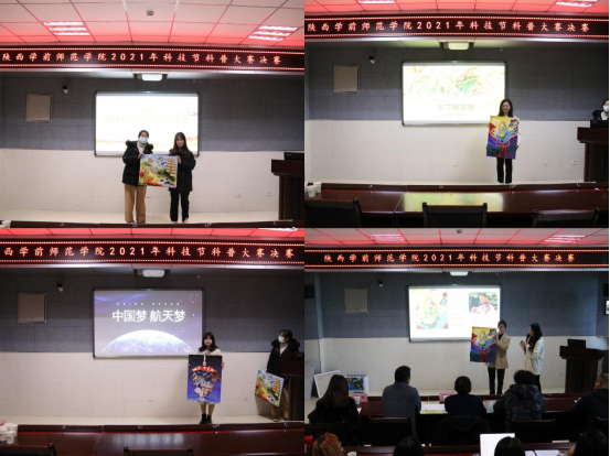 2021年11月9日中午,为了丰富学生的校园文化生活,展现学生风采,提高大学生的实用技能和实际动手操作能力,我校精心筹备并组织了本次陕西学前师范学院科技节科普设计大赛。本次大赛在毓秀楼智慧教室隆重举行,大赛的主题为“科学启迪智慧,科技创造未来”。信息工程学院副院长邓志龙、西安点晴信息科技有限公司美术总监张磊、美术学院石小雷老师、信息工程学院毛新康老师、信息工程学院王颖老师担任评委。
